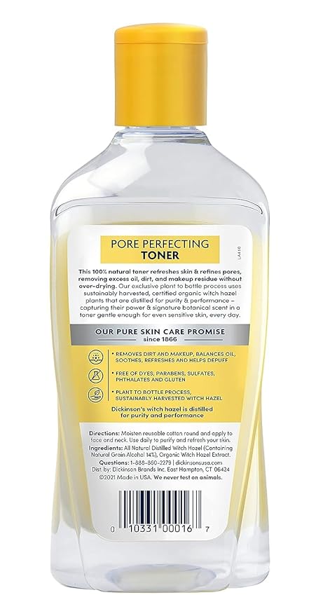 Dickinson’s Original Witch Hazel Pore Perfecting Toner, 100% Natural, 16 Ounce Fragrance free